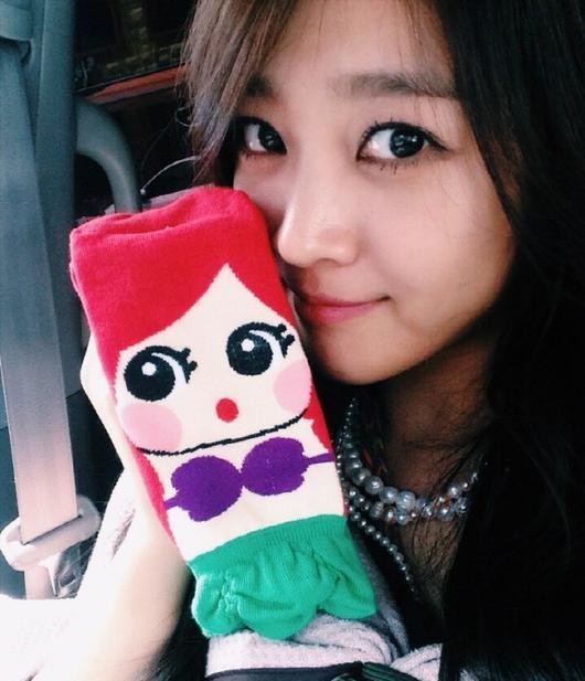 공개된 사진 속 조보아는 자신과 똑 닮은 귀여운 인어공주 양말을 들고 핑크빛 가득한 미소를 지은 채 카메라를 바라보고 있다.