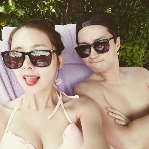 공개된 사진은 신혼여행 중인 소이현♥인교진 부부의 모습이 담겨 있다. 소이현♥인교진은 커다란 선글라스를 착용한 채 수영장 선베드에 누워있다.