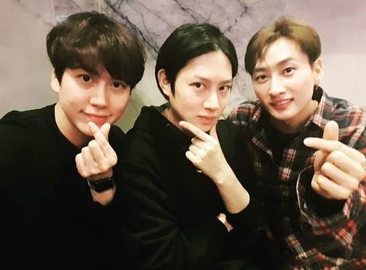 김희철은 지난 3일 자신의 인스타그램에 한 장의 사진을 게재했다. 공개된 사진 속 김희철은 규현과 은혁 사이에 앉아 카메라를 바라보고 있다. 김희철은 한 손으로 브이를 그린 채 턱에 갖다 대고 있다.