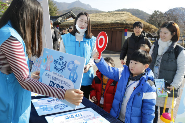 환경부 수도권대기환경청은 지난 1일 경기 과천시 서울랜드에서 미세먼지 대응 캠페인 '미션! 푸른 하늘을 지키자'를 진행했다. 이번 캠페인은 시민들에게 겨울철 고농도 미세먼지 발생에 대비해 '미세먼지 대응 요령'을 안내하고 실천을 독려하기 위해 마련됐다. 사진은 어린이가 미세먼지 피해 예방을 위한 생활수칙을 맞히는 OX 퀴즈에 참여하고 있는 모습. (사진제공=수도권대기환경청)