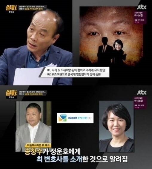 지난 2016년 방송된 JTBC '썰전'에서 전원책 변호사의 발언이 다시 주목받고 있다. 당시 전원책 변호사는 '정운호 게이트 파문'을 주제로 이야기를 나누면서 최유정 변호사가 수임료 50억을 받은 데에 대해 “착수금 20억 원은 내가 변호사인데도 들어본 적이 없다"고 말했다.