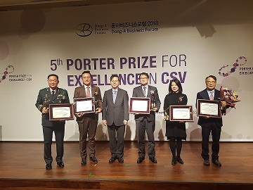 산업정책연구원과 동아일보, 채널A가 주최한 CSV 포터상은 ‘함께 나누며 성장하는 사회’를 조성하면서 자본주의의 문제점을 치유할 대안으로 꼽히는 미래경영의 패러다임인 CSV(공유가치창출․Creating Shared Value) 활동을 활성화하기 위해 경영전략의 세계적 거장인 마이클 포터 미국 하버드대 교수와 함께 2014년에 처음 제정한 상으로 올해 5회째를 맞이하였다.