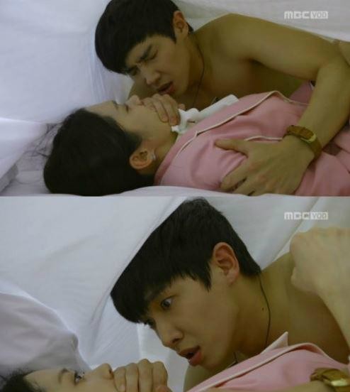 이준은 옷을 벗은 채 장나라를 끌어 당겨 침대에 눕혔다. 이에 두 사람은 침대에서 이불을 함께 뒤집어 쓰며 야릇한 분위기를 연출했다.