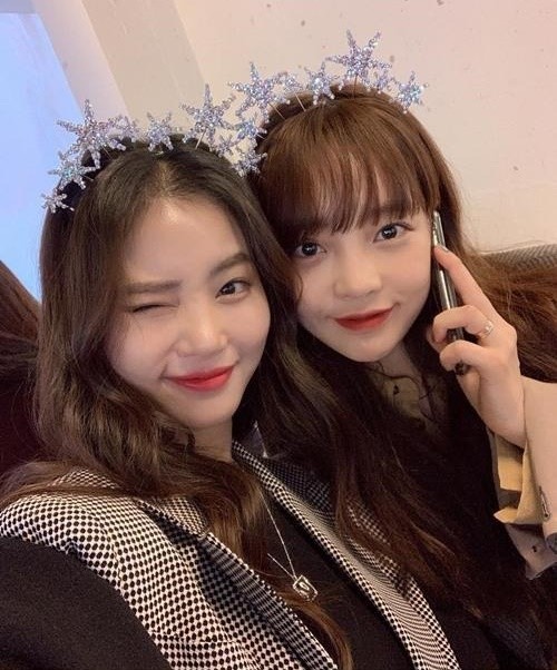 구하라는 6일 자신의 인스타그램을 통해 사진 두 장을 게재했다. 공개된 사진에는 구하라가 황승언과 함께 블링블링한 머리 장식을 한 채 연말을 즐기고 있는 모습이 담겨 있다.