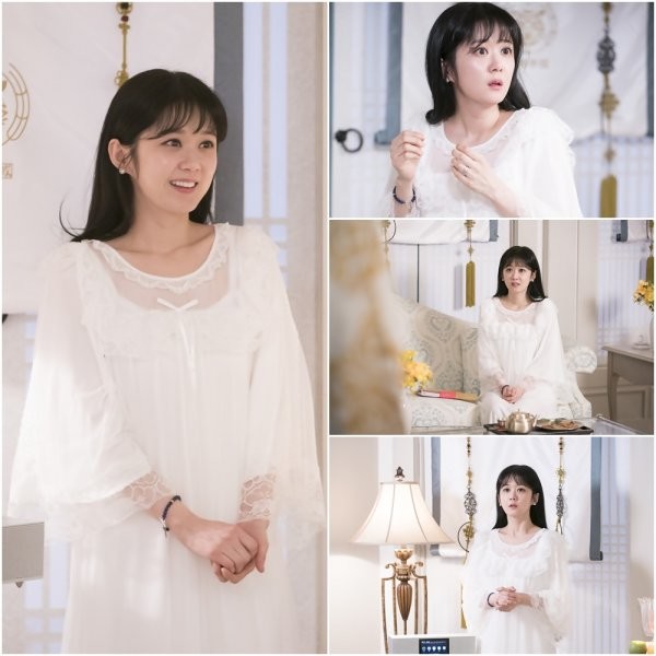 공개된 장면은 극중 황후 오써니(장나라)가 흑단 같은 긴 생머리를 풀어 늘어뜨린 채 새하얀 드레스 잠옷을 입고 황후전에서 황제가 오기를 기다리고 있는 장면이다.
