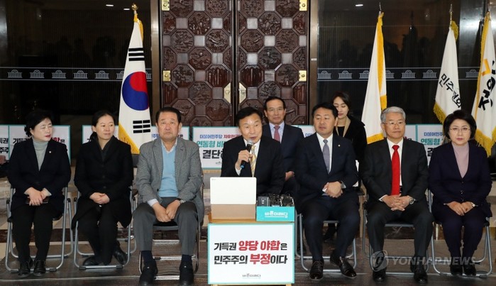 손 대표는 "제왕적 대통령제는 더욱 강화됐고, 국회는 여전히 무력했다"며 특히 "촛불의 힘으로 정권 잡은 민주당은 촛불혁명으로 심판받은 한국당과 손잡고 짬짜미 예산을 통과시키며 선거제 개혁을 거부했다"고 주장했다.