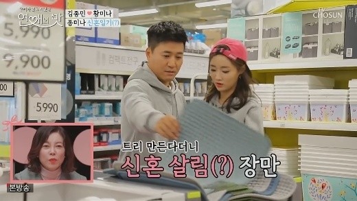 지난 6일 방송된 TV조선 연애 리얼리티 프로그램 '연애의 맛'에서 김종민과 황미나가 크리스마스트리 준비와 월동 준비를 위해 마트를 찾았다.