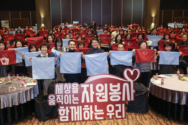 서울 성동구 자원봉사센터는 최근 왕십리 민자역사 디노체컨벤션에서 ‘2018 자원봉사자의 날’ 행사를 개최했다. 행사에서 우수자원봉사자와 모범구민, 우수 자원봉사단체 및 수요처에 대한 시상이 진행됐다. 사진은 행사를 기념해 정원오 구청장 및 관계자들이 기념촬영을 하는 모습. (사진제공=성동구청)