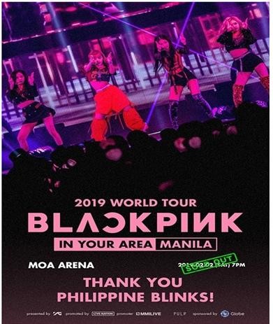내년 2월 2일 마닐라에서 열리는 ‘BLACKPINK 2019 WORLD TOUR [IN YOUR AREA]'는 팬들의 열띤 티켓팅으로 매진을 기록했다. 특히 추가 오픈한 시야제한석까지도 모두 매진되는 기염을 토했다.