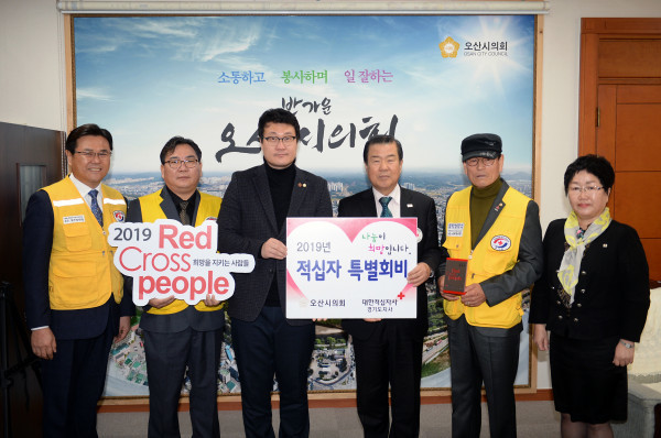 이 자리에서 장 의장은 "이달부터 2019년 1월31일까지 '2019 적십자회비 집중모금 캠페인'을 하고 있는 것으로 알고 있다"며 "모금기간 시민들의 적극적인 참여로 각종 재난과 기아 등으로 고생하는 많은 사람에게 희망을 줄 수 있도록 했으면 좋겠다"고 말했다.