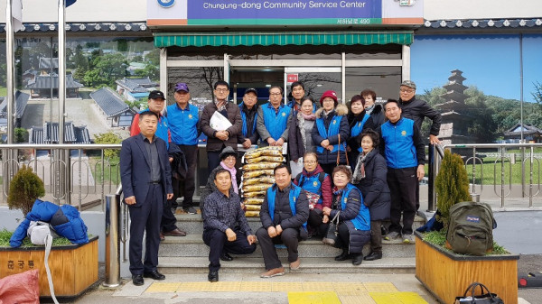 경기 하남시 바르게살기춘궁동위원회는 11일 홀몸노인 및 소외계층 10가구에 10kg 백미 10포(40만원 상당)를 전달했다. 사진은 전달식에 참여한 관계자들이 기념촬영을 하는 모습. (사진제공=하남시청)