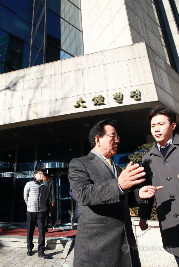 정순균 강남구청장이 12일 오전 삼성동 대종빌딩 건물 현장 점검을 마치고 취재진의 질문에 답하고 있다. 서울시는 11일 오후 신고를 받고 강남구청과 함께 긴급 점검을 한 뒤 입주자들을 모두 퇴거시켰다고 밝혔다.