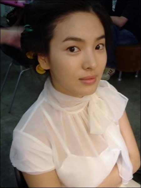 과거 온라인상에 ‘송혜교의 이중매력’이라는 제목으로 한 장의 사진이 올라왔다. 사진 속 송혜교는 미용실에서 메이크업을 받는 도중 촬영된 것으로 뽀얀 피부를 자랑하며 청순미를 과시하고 있다.