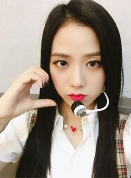 사진 속 흑발의 지수는 마이크를 낀 채 카메라를 응시하고 있다. 까만 생머리가 유독 잘 어울리는 똘망똘망한 눈망울의 지수 모습에 팬들은 설렌다는 반응이다.