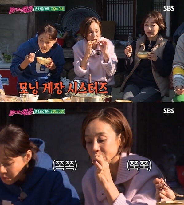 11일 방송된 SBS '불타는청춘'에서 권민중과 강경헌은 멤버들과 둘러앉은 아침 식사 자리에서 오직 게장에 꽂혀 무한 먹방을 보여줬다. 권민중은 손에서 게장을 놓지 않으며 "아 맛있어"라고 감탄했다.