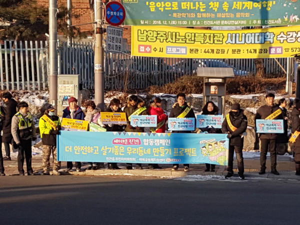 경기 남양주시 세이프존 진건 추진단은 14일 진건중학교 앞에서 청소년 선도 캠페인을 실시했다. 이날 학교 폭력 예방, 청소년 유해약물(주류·담배 등) 근절 등을 위한 선도 활동이 진행됐다. 사진은 캠페인을 진행하는 모습. (사진제공=남양주시청)