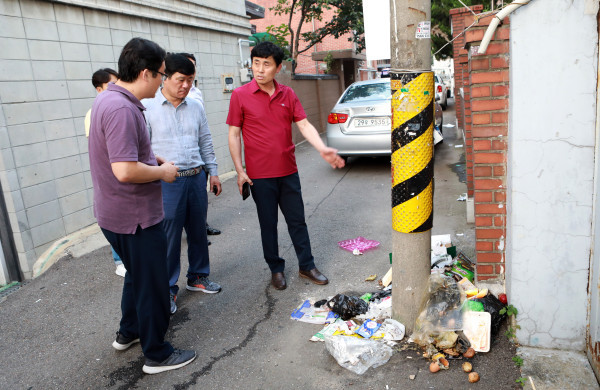 이번 현장점검은 주택 밀집지역내 골목에 쌓여 방치되고 있는 생활쓰레기 무단투기 실태를 직접 확인하고 이로 인한 쓰레기 부패 및 악취 등 생활불편 사항을 주변 거주민을 통해 듣고 확인하는 방식으로 진행됐다.