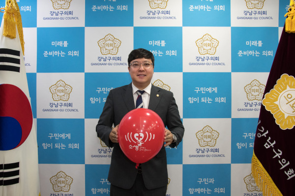 | ▲ 지난 8일 ‘닥터헬기 소리는 생명입니다’ 캠페인에 동참하고 있는 이관수 의장. (사진제공=강남구의회) | ||