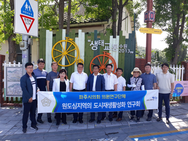 [파주=조영환 기자]경기 파주시의회 의원연구모임 ‘원도심지역의 도시재생활성화 연구회’가 수원시지속가능도시재단 도시재생지원센터 및 행궁동 사업현장을 방문해 도시재생 관련 벤치마킹을 실시했다.