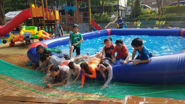 최근 서울 은평구 갈현1동 주민자치회 교육문화분과가 갈곡리 어린이공원에서 지역내 영·유아 및 초등학생을 위한 대규모 워터파크 행사를 개최했다. 사진은 즐겁게 물놀이를 하고 있는 아이들의 모습. (사진제공=은평구청)