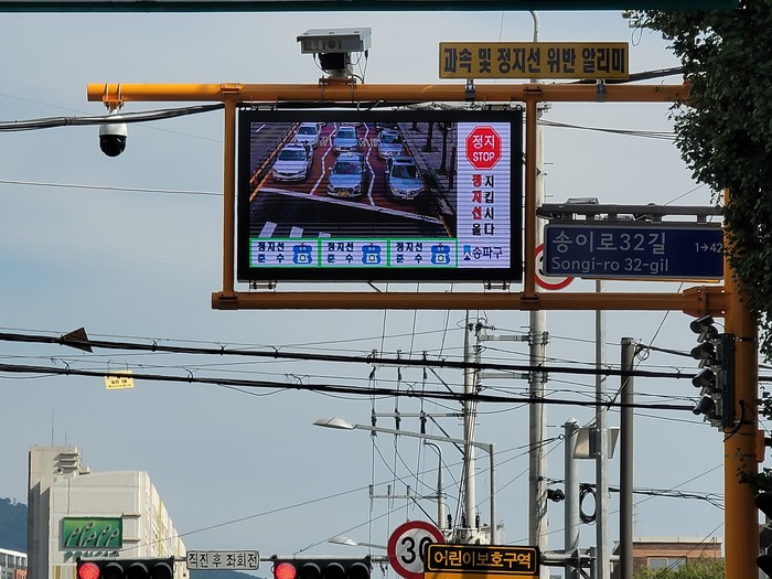 | ▲ ‘스마트 교차로시스템’의 ‘과속· 정지선 위반 알리미’ (사진제공=송파구청) |